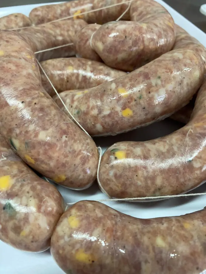 El chorizo jalapeño-queso de La Porchetta combina carne de cerdo 100% fresca con trocitos de jalapeño y queso derretible, ideal para asarlo a la parrilla o dorarlo en sartén para disfrutar su sabor cremoso y ligeramente picante.