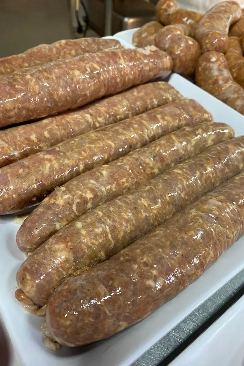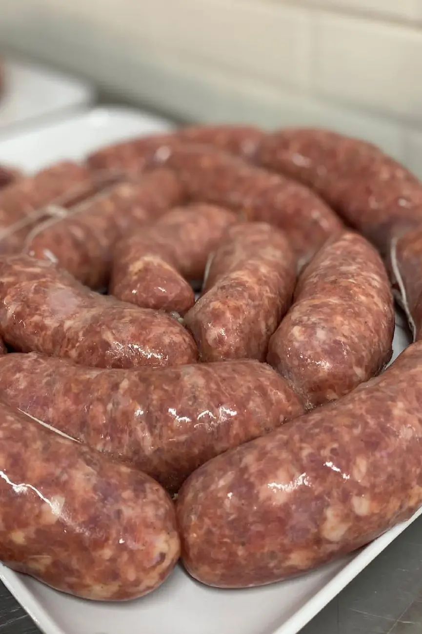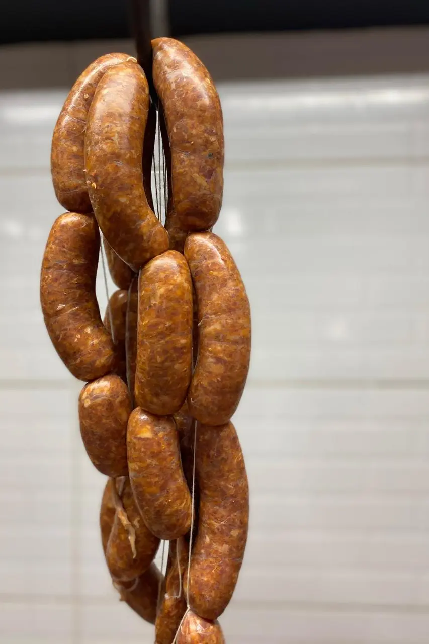Los chorizos artesanales de La Porchetta están elaborados con 100% carne de cerdo y embutidos cuidadosamente en tripa natural, garantizando un sabor auténtico y una textura incomparable.