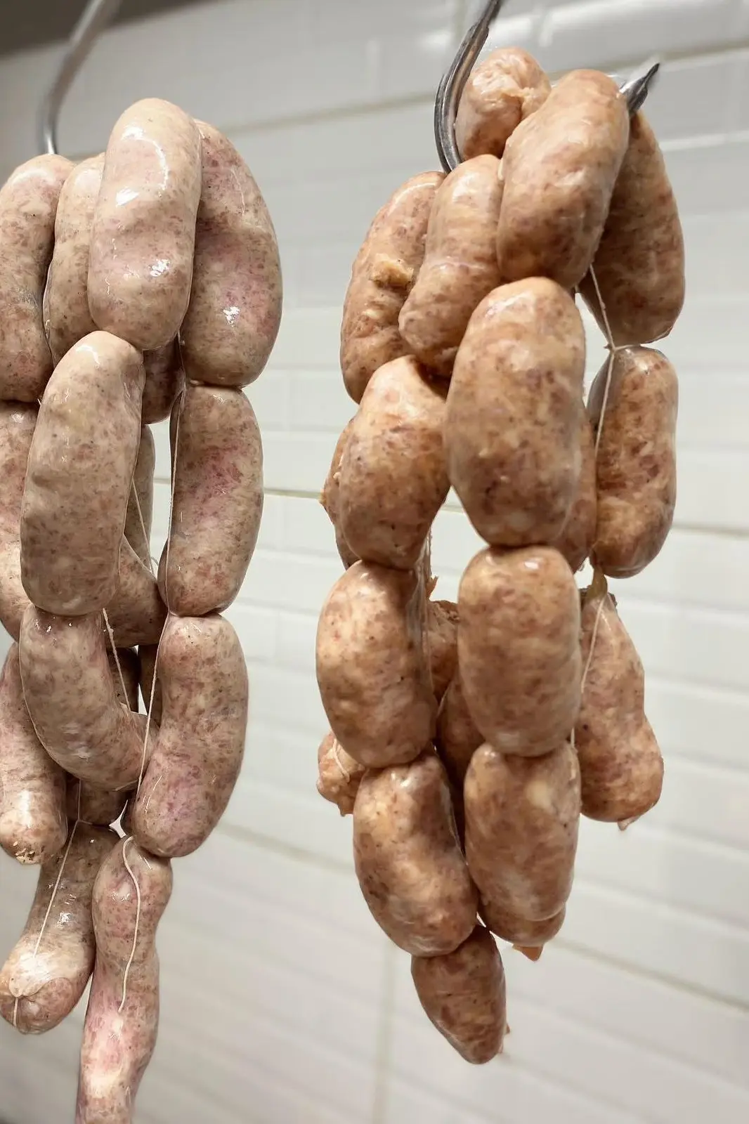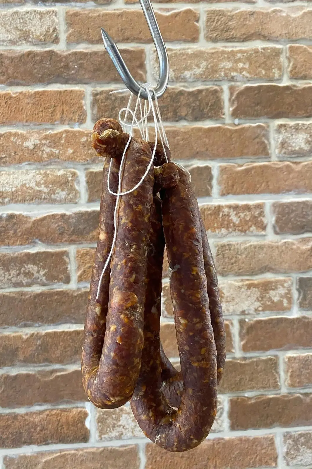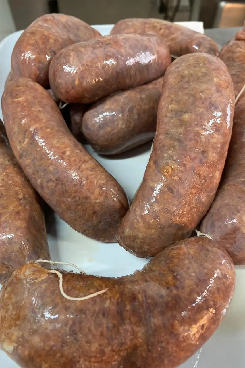 Los chorizos artesanales de La Porchetta están elaborados con 100% carne de cerdo y embutidos cuidadosamente en tripa natural, garantizando un sabor auténtico y una textura incomparable.