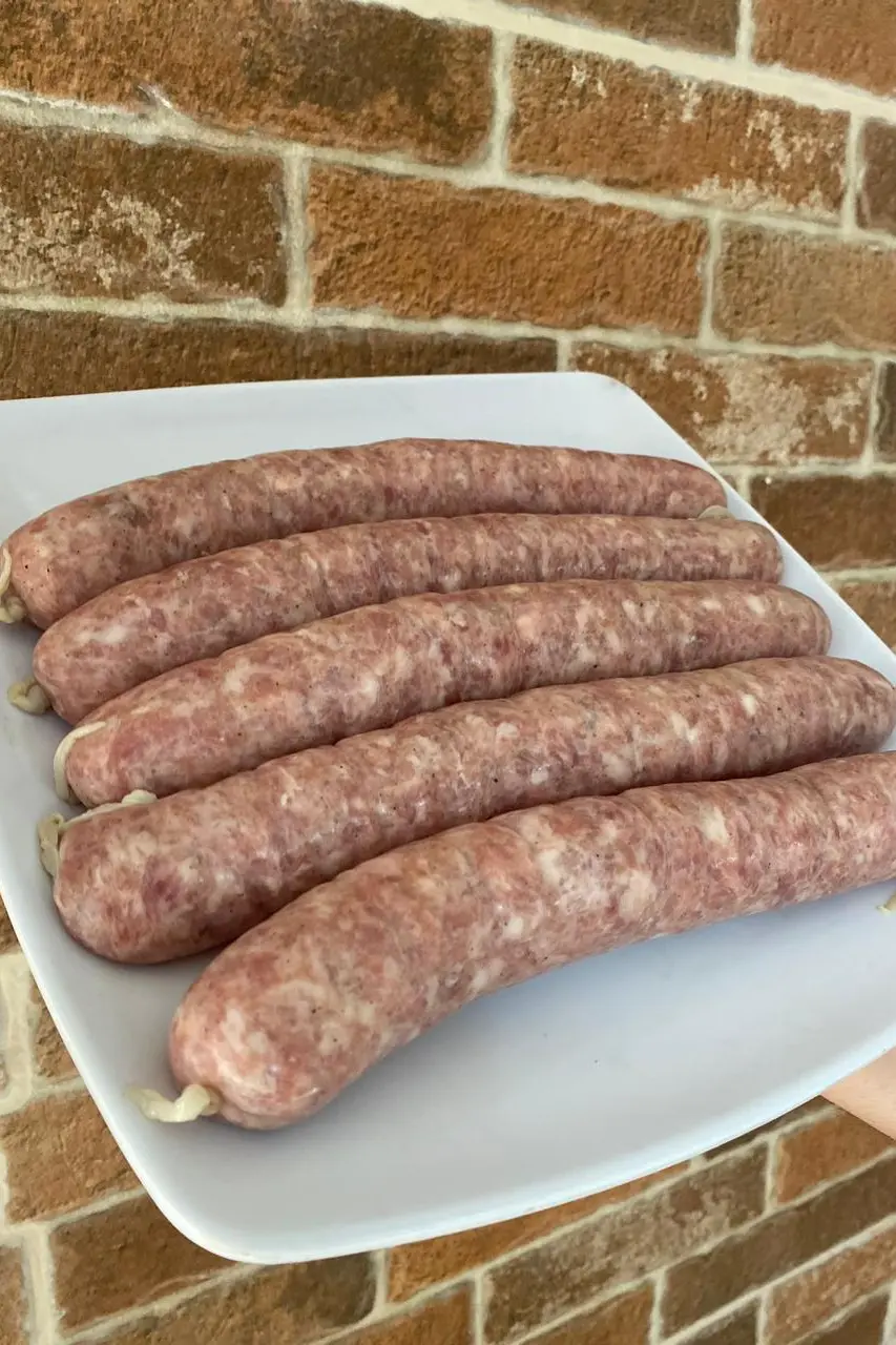 El chorizo alemán Bratwurst de La Porchetta ofrece un sabor suave y aromático, elaborado con 100% carne de cerdo, ideal para asarlo lentamente y disfrutarlo en panes, parrilladas o comidas familiares.